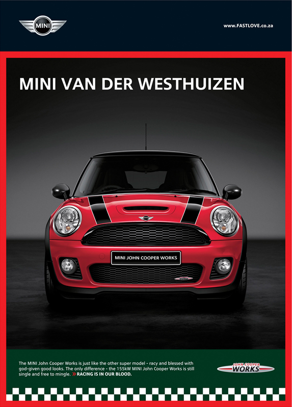 This ad made reference to the world-famous South African model, Minki Van Der Westhuizen, in order to sell the most racy member of the MINI range.